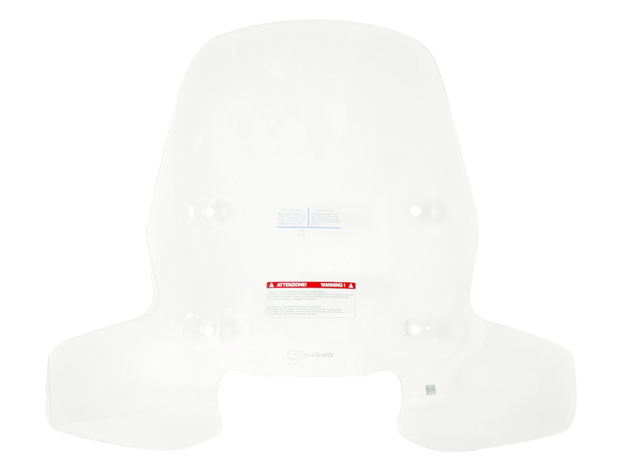 Windscherm van hoogwaardig slagvast methacrylaat. Splintervrij, 4 mm. Getest en gehomologeerd in het Piaggio R&D Centre (geen ABE nodig).