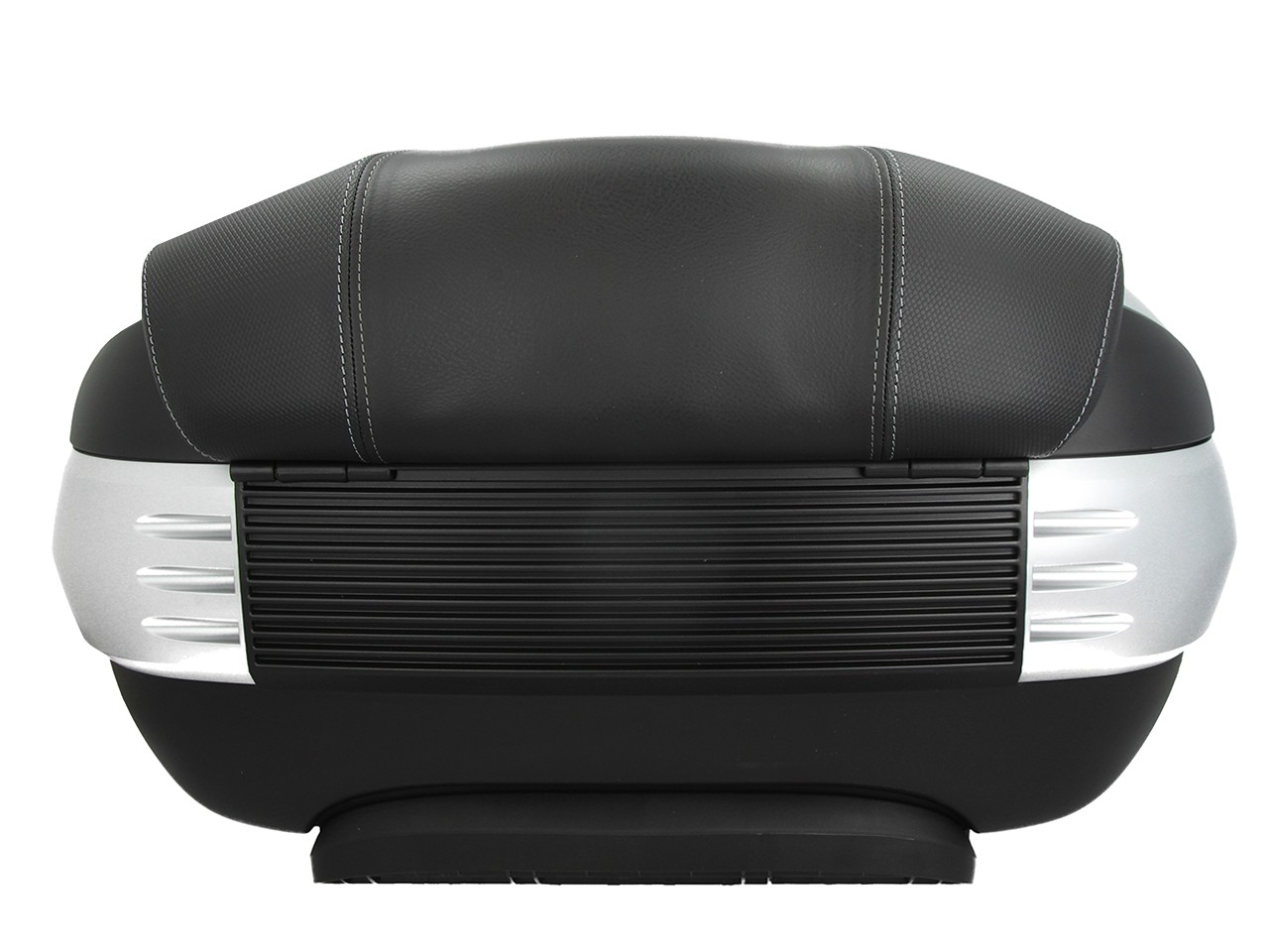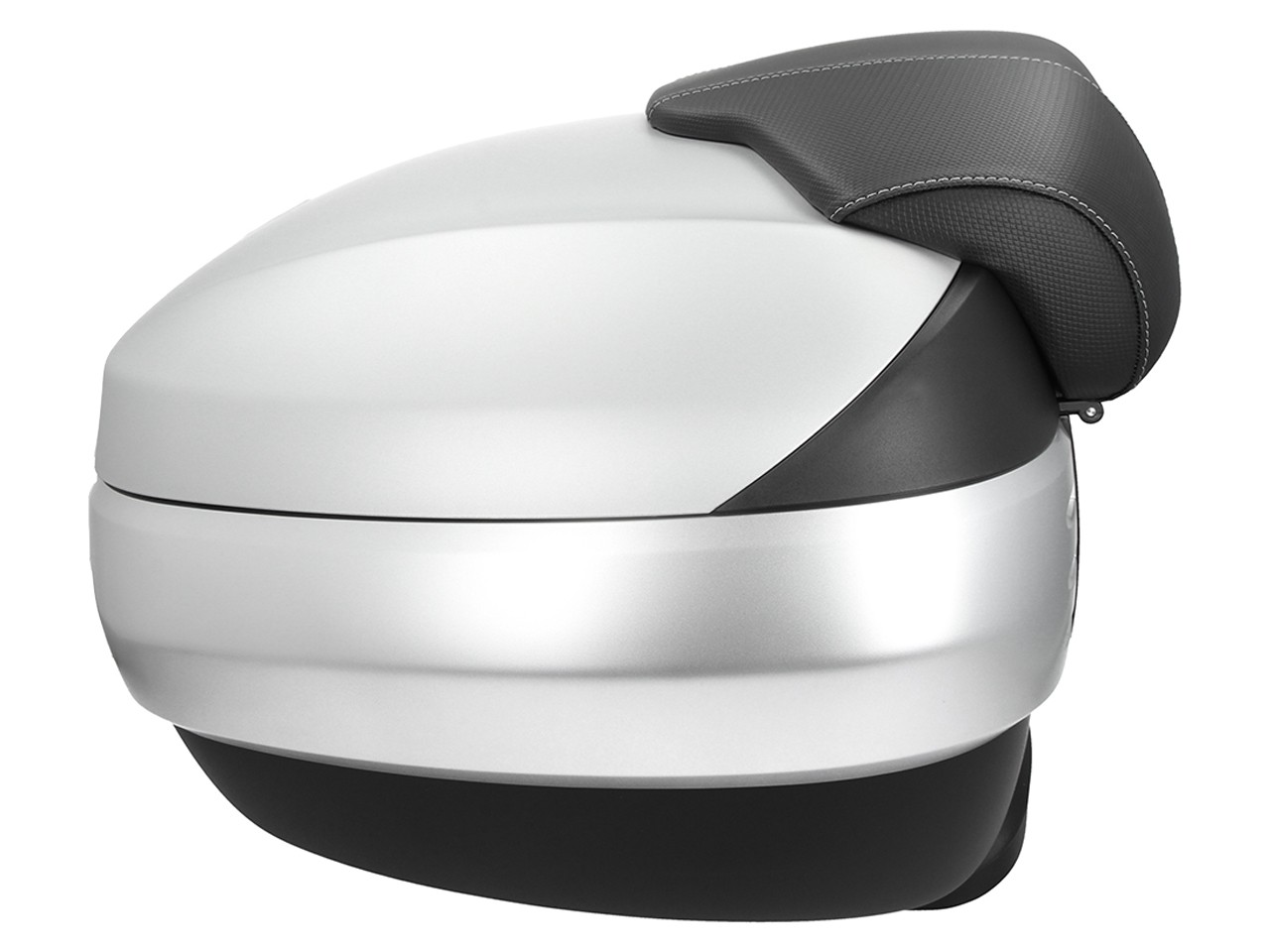 Ruim, met snelmontagesysteem. Biedt ruimte voor 2 modulaire helmen. Bovenschaal gelakt in de kleur van het voertuig, met comfortabele rugbekleding voor de passagier, in hetzelfde materiaal en dezelfde afwerking als de zitting. Documentenvak binnenin en elastische riemen om de bagage te stabiliseren.