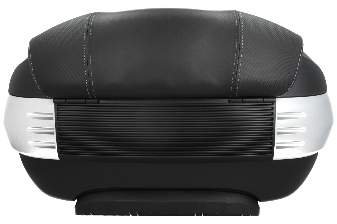 Ruim, met snelmontagesysteem. Biedt ruimte voor 2 modulaire helmen. Bovenschaal gelakt in de kleur van het voertuig, met comfortabele rugbekleding voor de passagier, in hetzelfde materiaal en dezelfde afwerking als de zitting. Documentenvak binnenin en elastische riemen om de bagage te stabiliseren.