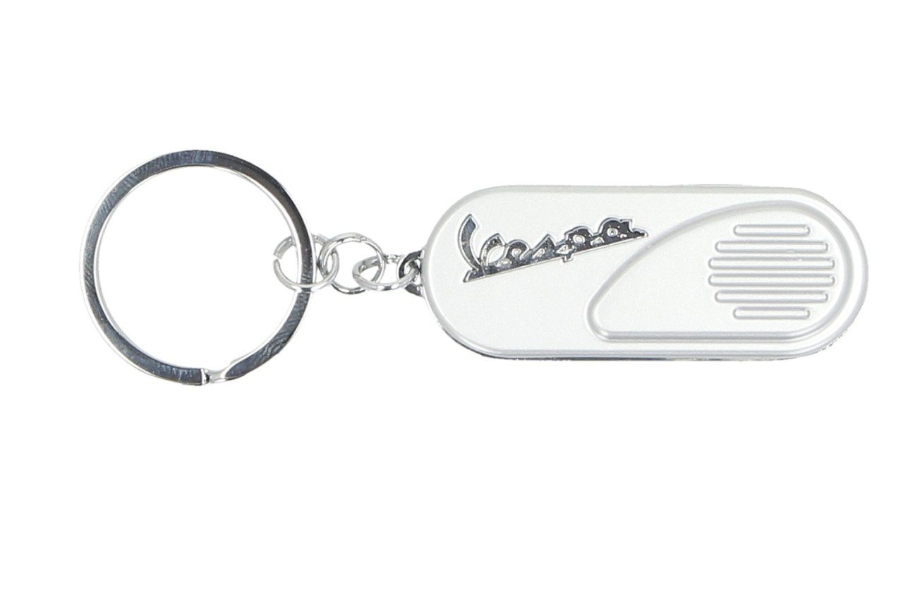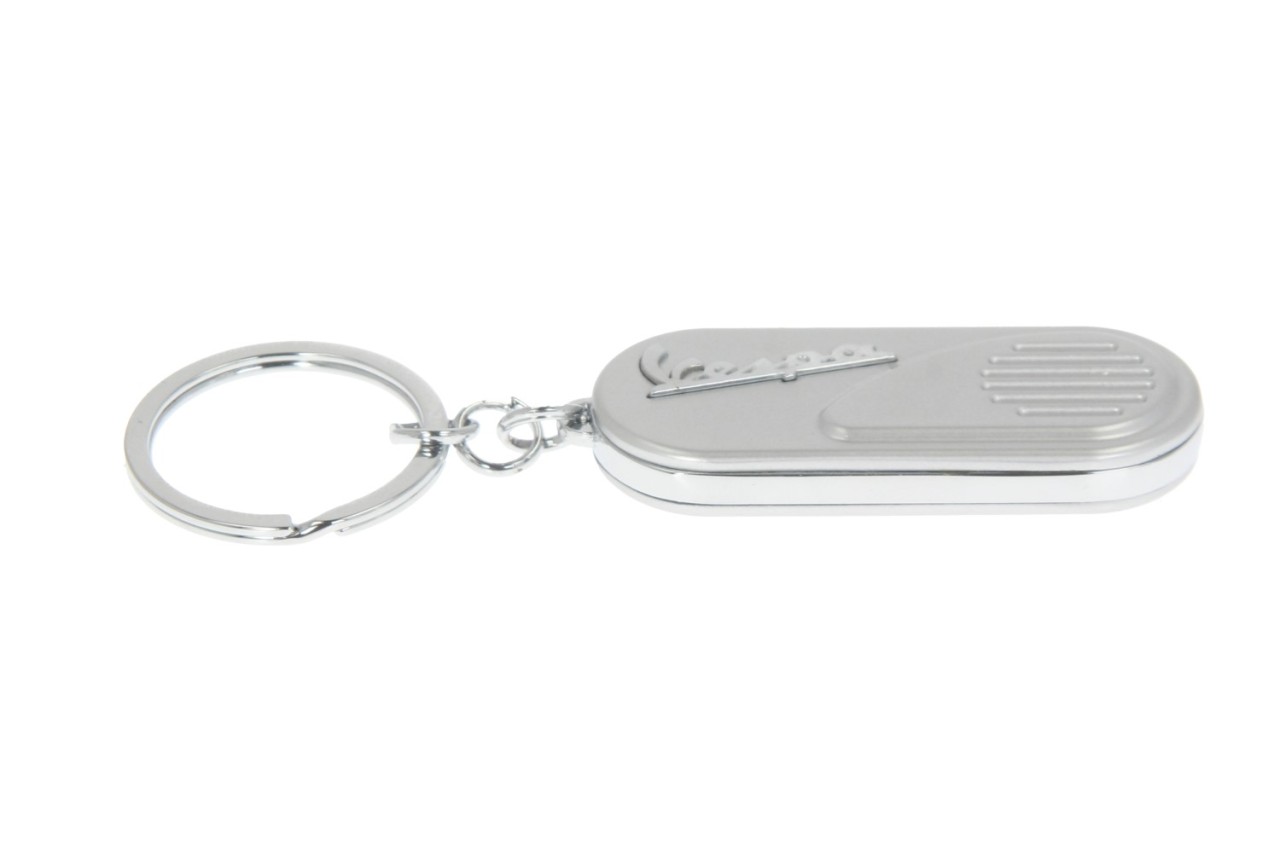 Productinformatie "Vespa sleutelhanger, klassieke zijkap zilver"