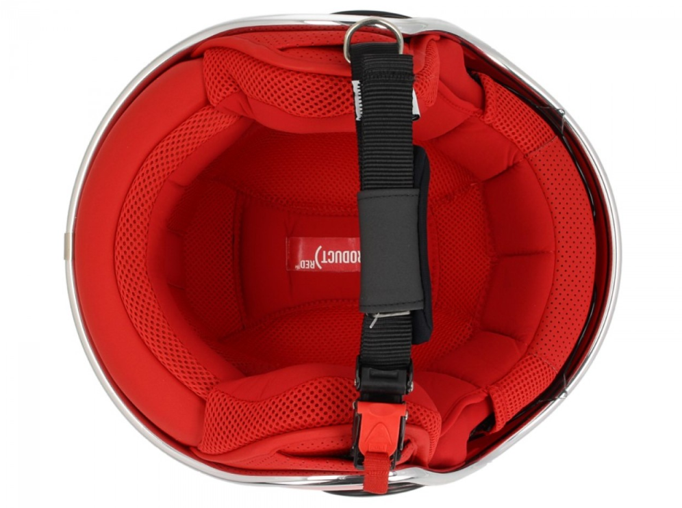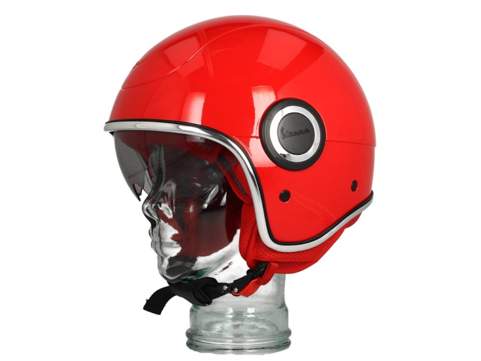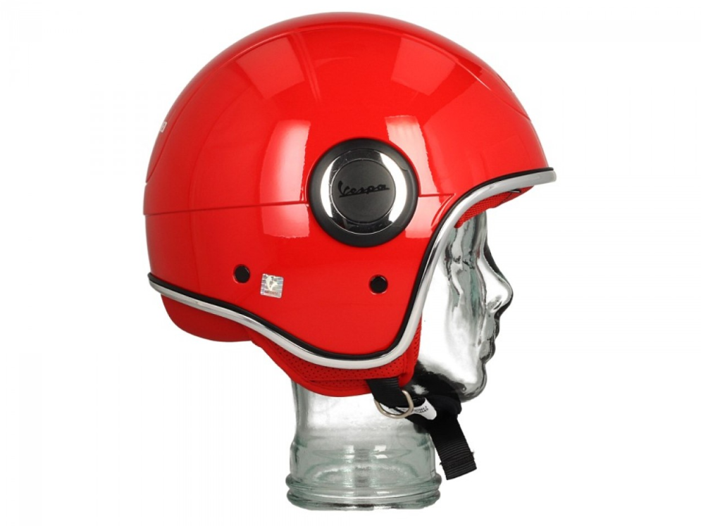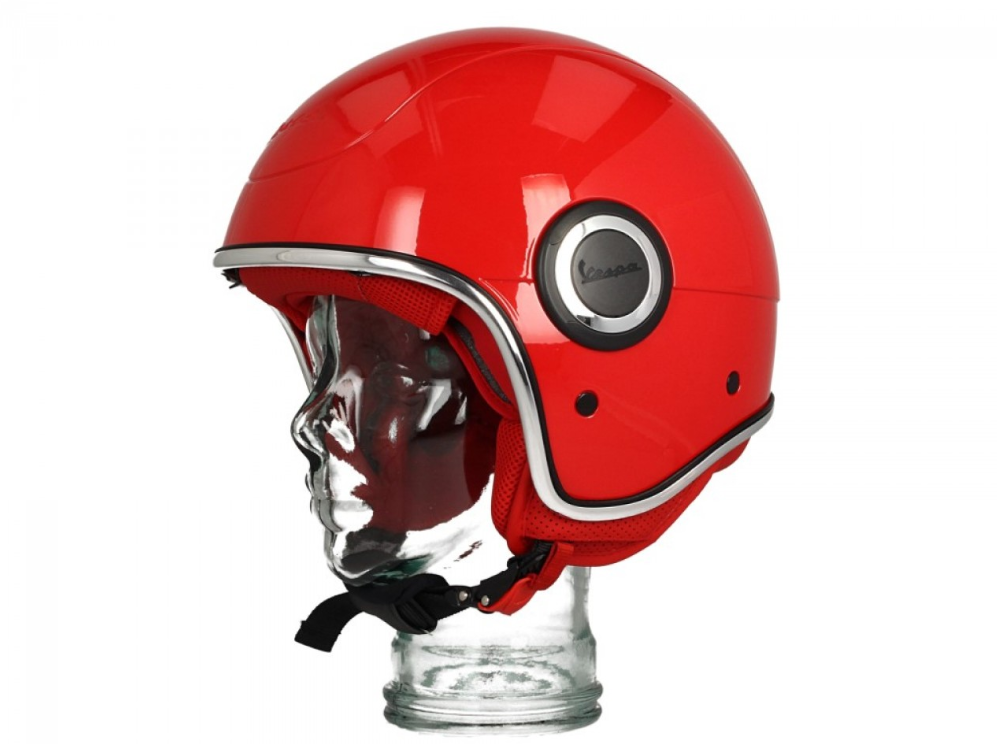 Deze helm maakt onmiskenbaar deel uit van de Vespa collectie! De combinatie van Vespa en (RED)® resulteert in een exclusieve helm met verfijnde details, zoals de verchroomde helmrand. De rode binnenvoering van absorberende microvezel is uitneembaar. De donkere zonneklep en de pijltjes, die passen bij het materiaal van de zitting van de Vespa, maken het ontwerp compleet. Dit is een product uit de VESPA (RED) collectie®