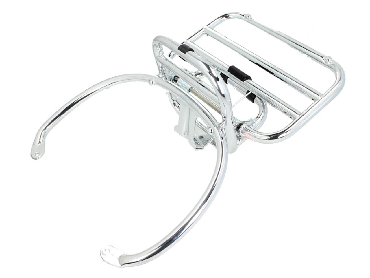 Het achteropklapbare bagagerek is gemaakt van hoogwaardig materiaal en maakt indruk met zijn robuuste ontwerp. Het accessoire is snel en eenvoudig te monteren en zorgt ervoor dat je topkoffer stevig aan de Vespa vastzit.