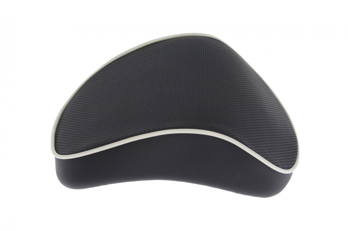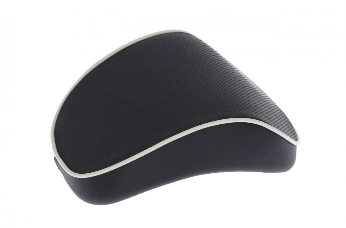 Zwarte rugleuning met witte biezen voor de duopassagier. Past bij de originele topkoffer voor Vespa Primavera / Sprint, in de look van de originele zetel.