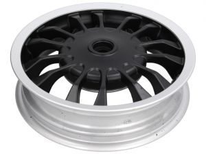 Sportieve achtervelg in de look van de nieuwe Vespa Sprint, zwart / gepolijst. (niet voor 2-takt)